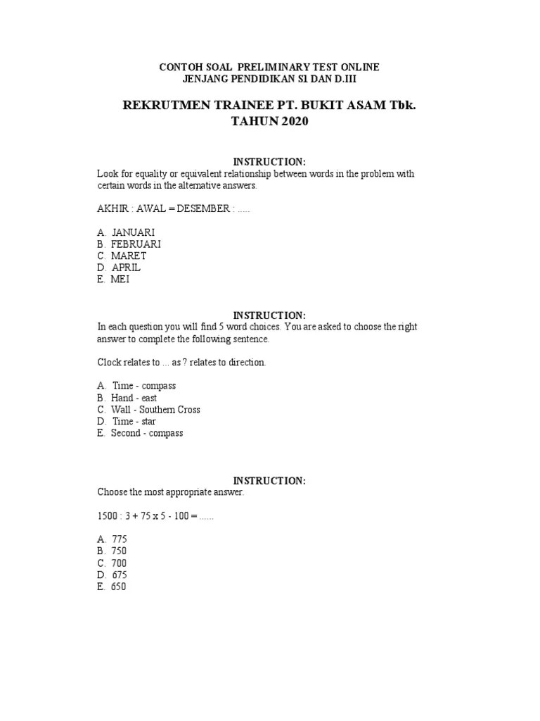 Contoh soal tes online pt bukit asam. We did not find results for: Maybe you would like to learn more about one of these? Check spelling or type a new query.